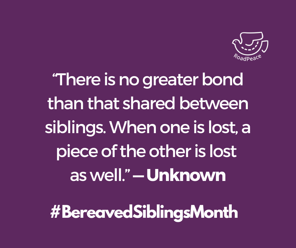 We need to be given the space to talk honestly about this – and this is why RoadPeace’s peer support is so important. Society needs to stop shutting down bereavement as too awkward a subject, and those who have been lucky enough not to experience loss yet, need to realise people often want to talk about their loved ones…and as part of this, we need to talk more about sibling loss.